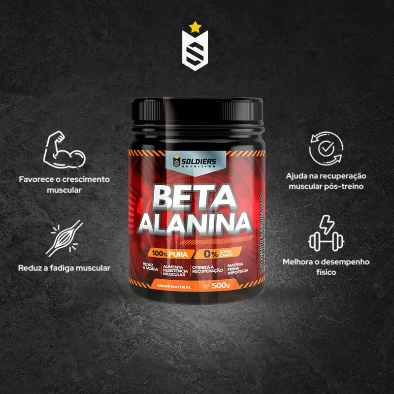 Se você busca elevar seus treinos a outro nível, a Beta Alanina Pura 500g Soldiers Nutrition é o suplemento ideal. Logo nos primeiros usos, você já percebe mais resistência, menos fadiga e muito mais intensidade em cada repetição.