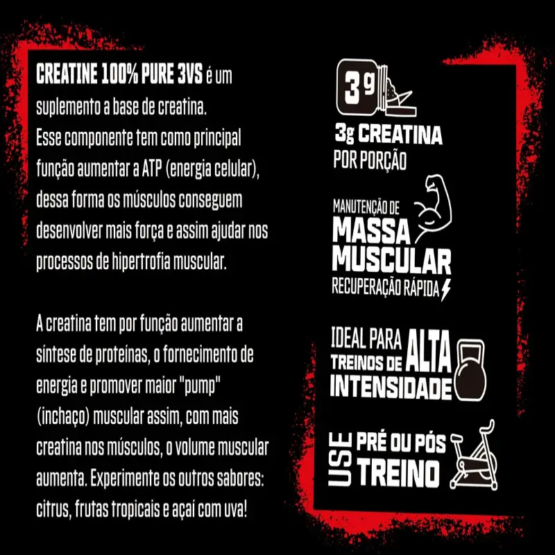 Quando falamos de qualidade, a creatina monohidratada 500g da 3VS Nutrition se destaca.