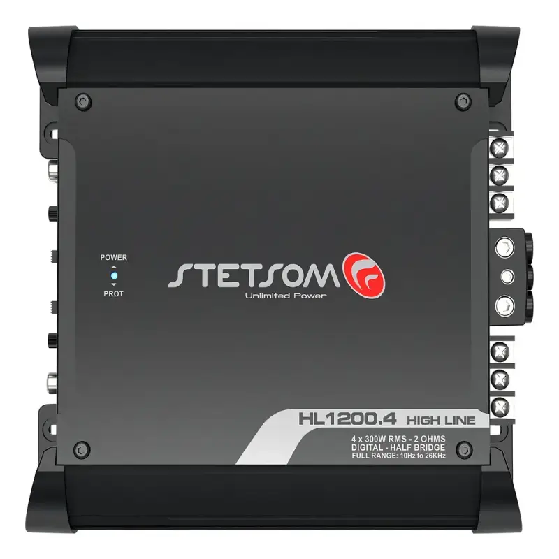 Antes de tudo, o grande destaque do Módulo Stetsom HL 1200.4 é sua potência real. Com 1200W distribuídos em 4 canais, ele entrega um som limpo e forte, ideal para projetos de médio e alto nível.
